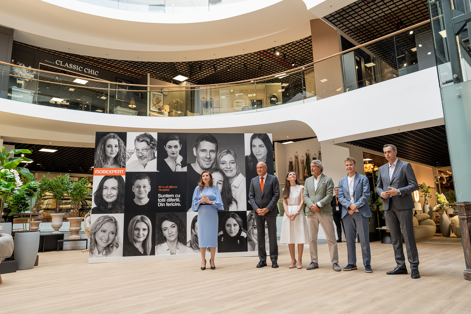 Grupul Mobexpert este o companie 100% românească, prezentă de peste 30 de ani pe piața din România. Reţeaua regională a Mobexpert numără 27 de hipermagazine şi magazine de dimensiuni mai mici, precum și un magazin online. Grupul Mobexpert are 2.100 de angajaţi şi o cifră de afaceri anuală de aproximativ 270 milioane euro. Grupul Mobexpert deţine, de asemenea, cinci fabrici de mobilă care produc pentru piaţa românească şi pentru export. Mobexpert include și 10 magazine Mobexpert Outlet dedicate ofertelor speciale, situate în Bucureşti (în zonele Pipera, Pantelimon, Militari), Suceava, Constanța, Brașov, Sibiu, Pitești, Timișoara şi Oradea.