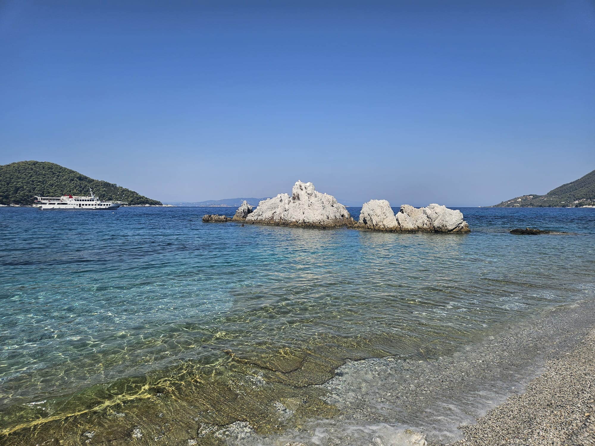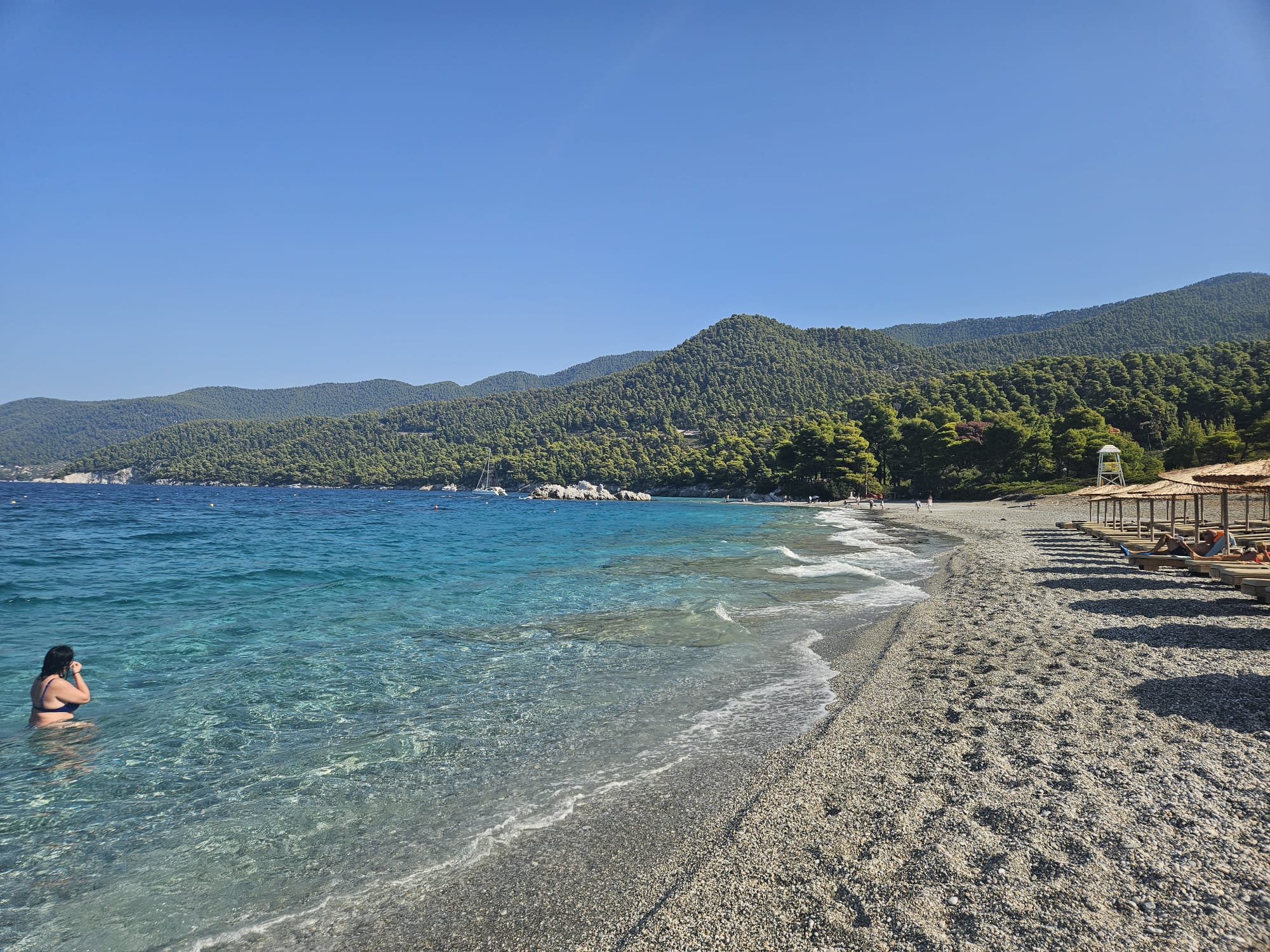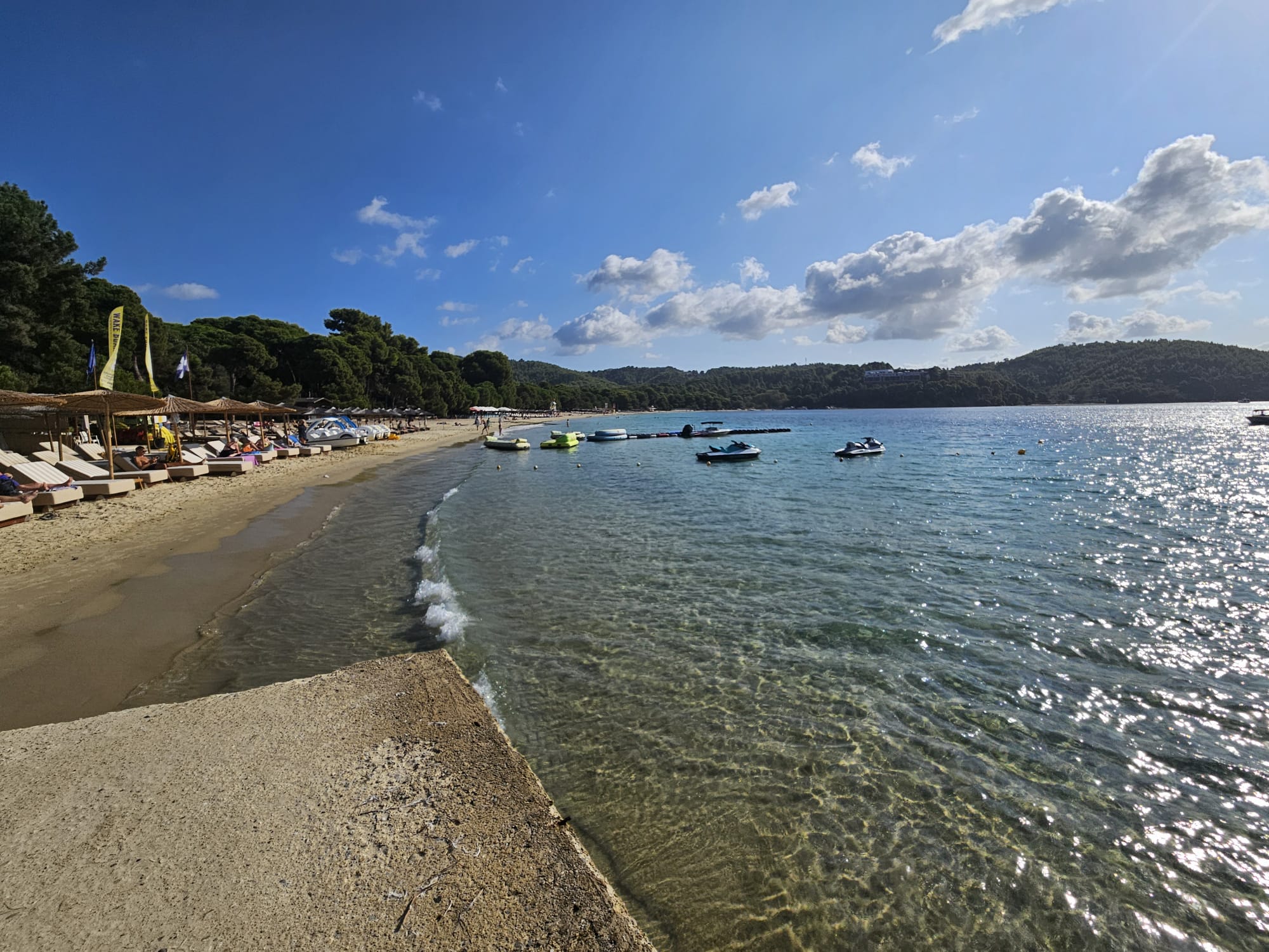 Am fost cazată la Vila Alexis, la doar 10 minute de mers pe jos de Plaja Koukounaries, care, din punctul meu de vedere, este cea mai frumoasă plajă din Skiathos. Nisipul fin, apele cristaline și pădurile de pini care înconjoară plaja creează un peisaj superb.