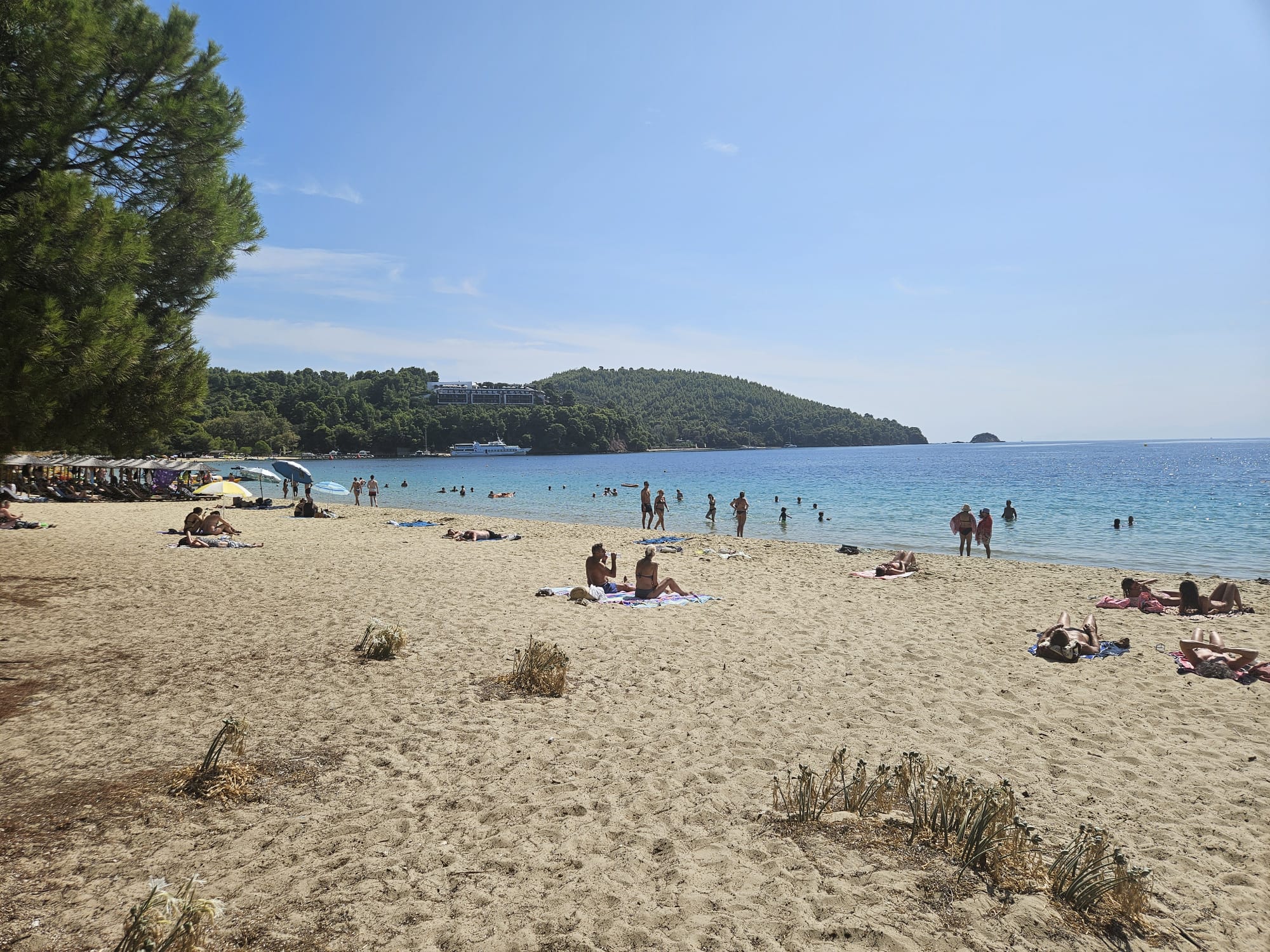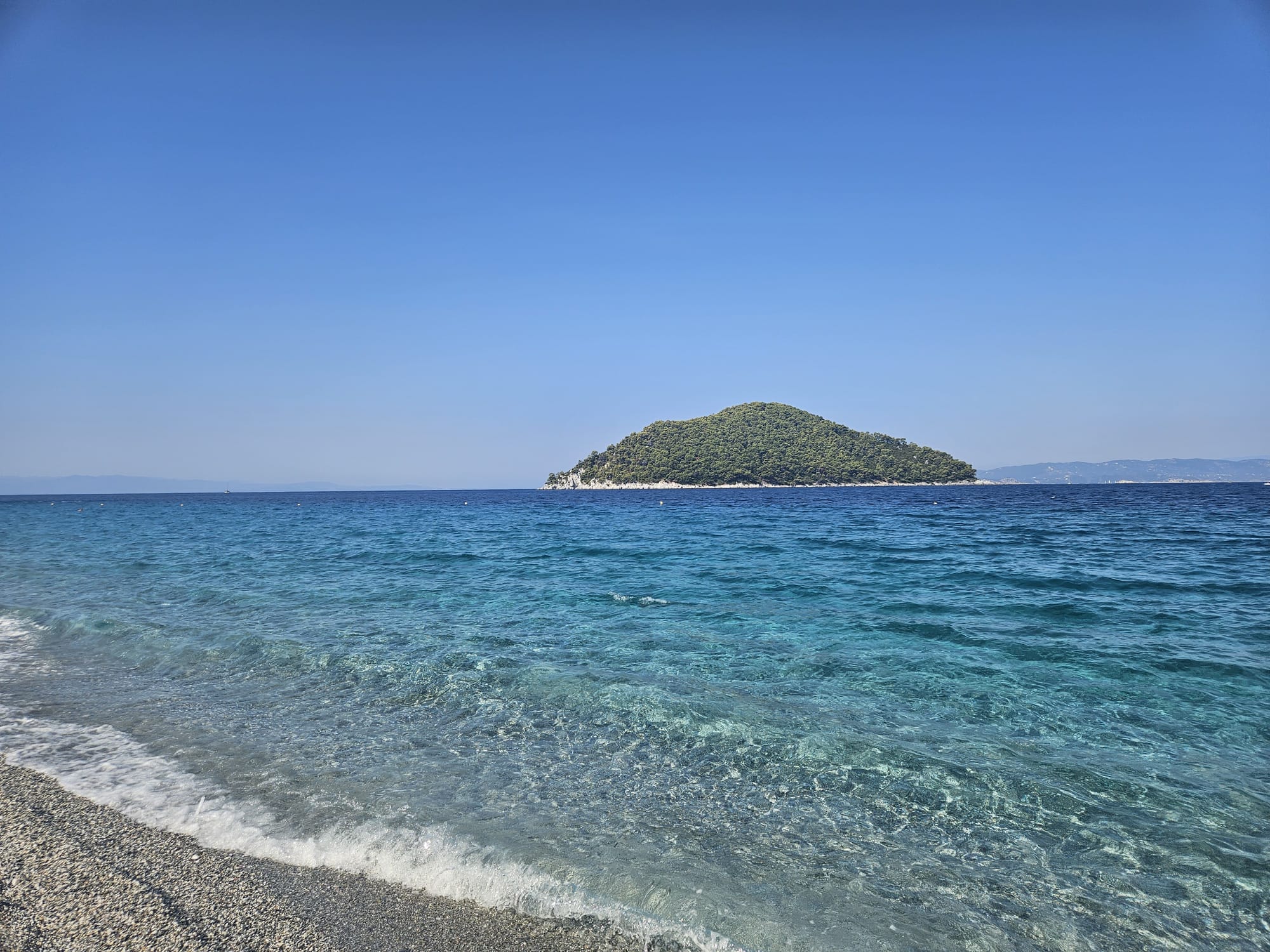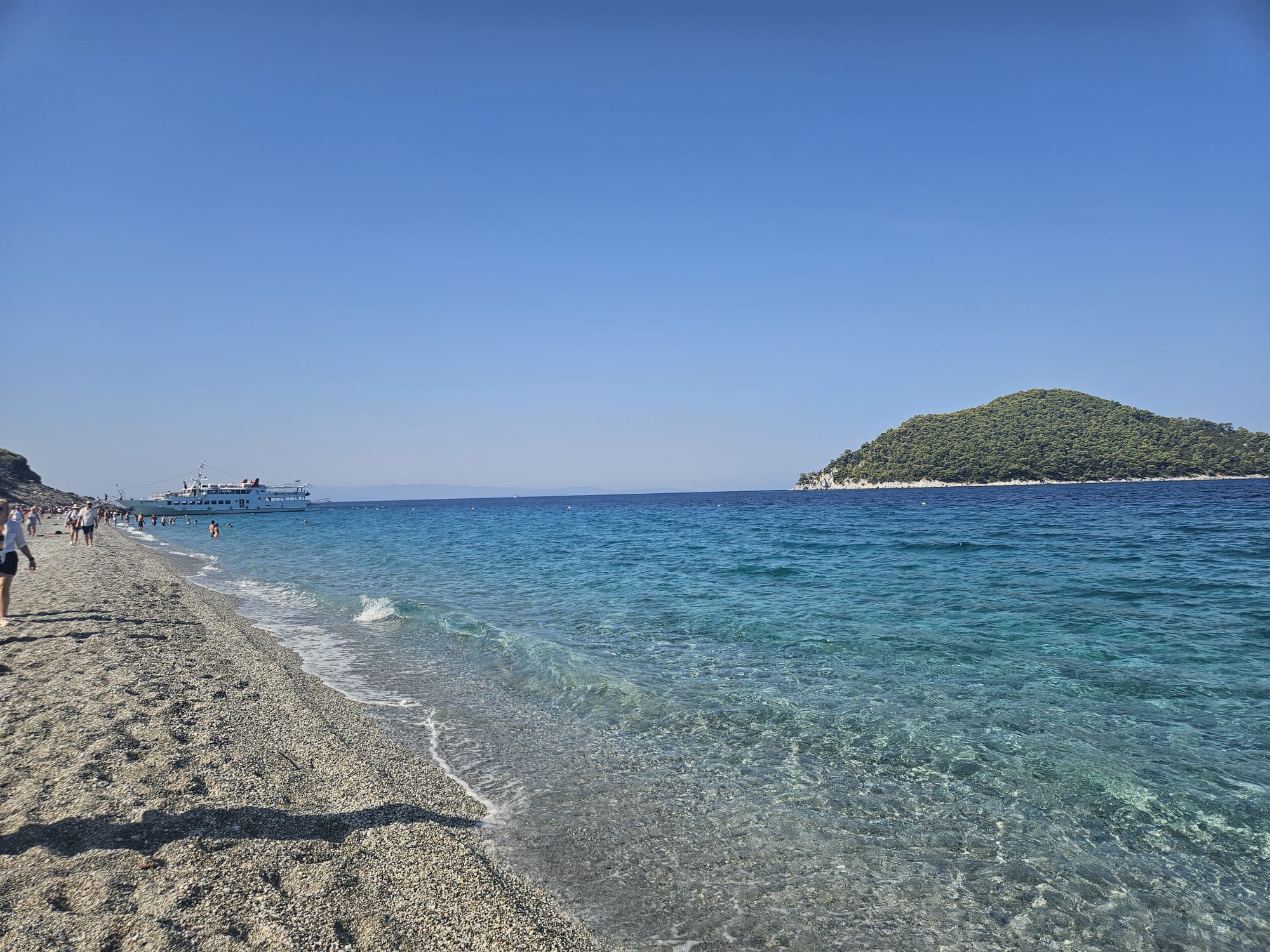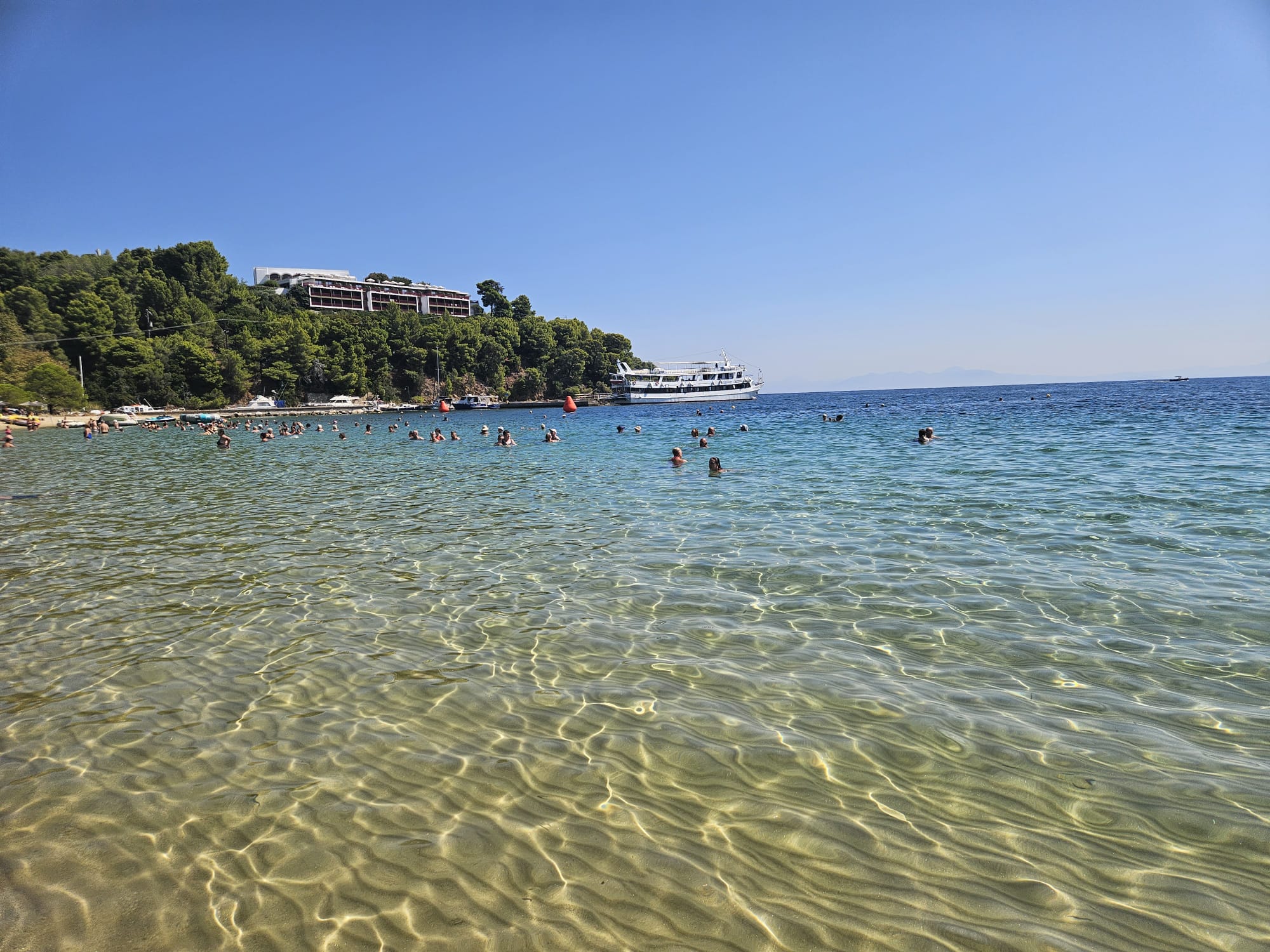 Am fost cazată la Vila Alexis, la doar 10 minute de mers pe jos de Plaja Koukounaries, care, din punctul meu de vedere, este cea mai frumoasă plajă din Skiathos. Nisipul fin, apele cristaline și pădurile de pini care înconjoară plaja creează un peisaj superb.